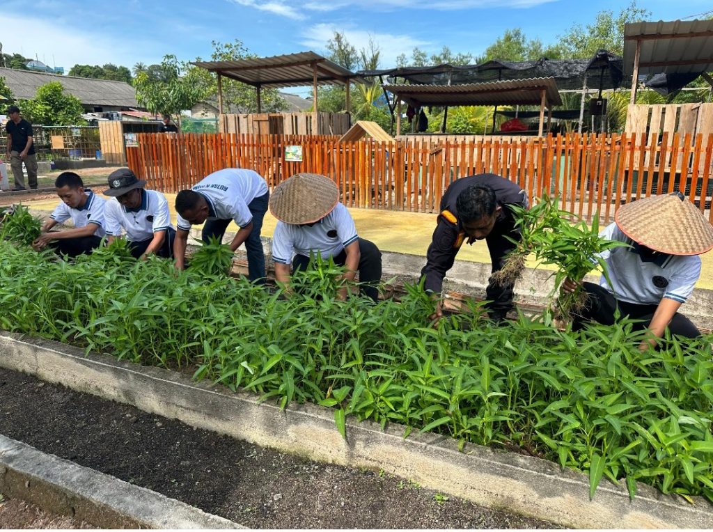 Karimun – Rumah Tahanan Negara (Rutan) Kelas IIB Tanjung Balai Karimun kembali mencetak prestasi melalui program pembinaan kemandiriannya. Kali ini, Warga Binaan Pemasyarakatan (WBP) sukses menggelar panen raya kangkung sebanyak 180 kilogram dari lahan Sarana Asimilasi dan Edukasi (SAE) Rutan. Panen yang dilaksanakan pada Sabtu (15/11) ini adalah hasil nyata dari kegiatan pembinaan berbasis kerja produktif.